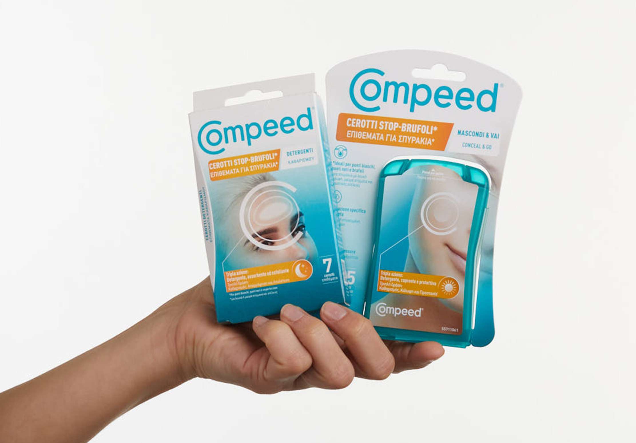 Compeed® hydrokolloidplastrene blev testet på næse, kind, pande eller hage. Plastrene kan også bruges på huden på andre dele af kroppen med undtagelse af følsomme områder som slimhinder.